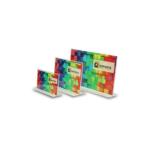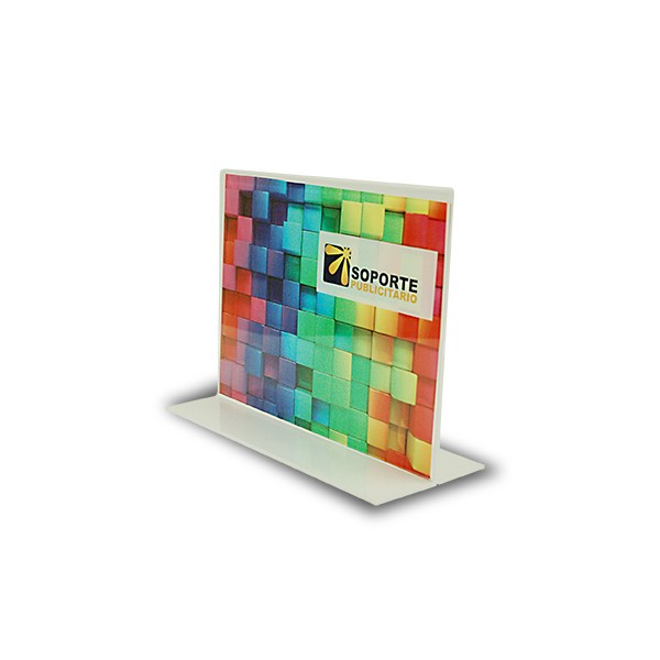 El porta-gráfica "T" horizontal formato carta (27,9 * 21,6cms) puedes combinarlo con gráfica en papel sintético o puedes imprimirlo personalmente en una impresora común.