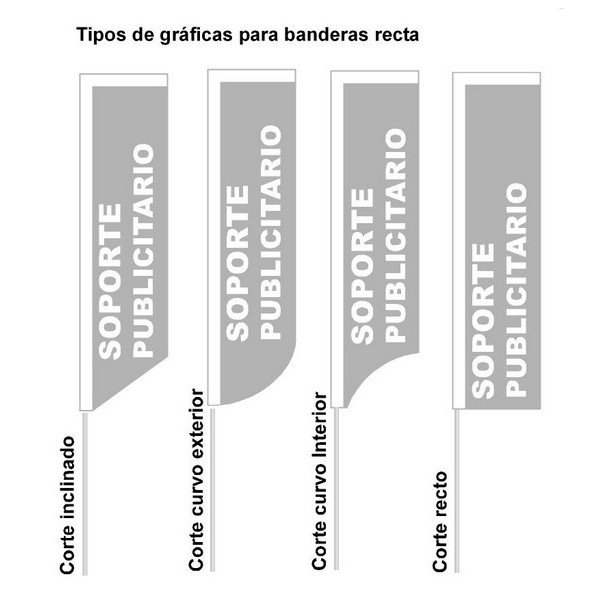 Descripción: Las banderas Rectas son ideales para mantener la gráfica siempre visible, pueden usarse en interior o exterior ya que las diferentes bases permiten adaptarse a cualquier superficie, ideal para eventos, automotoras, supermercados y puntos de venta al aire libre.
