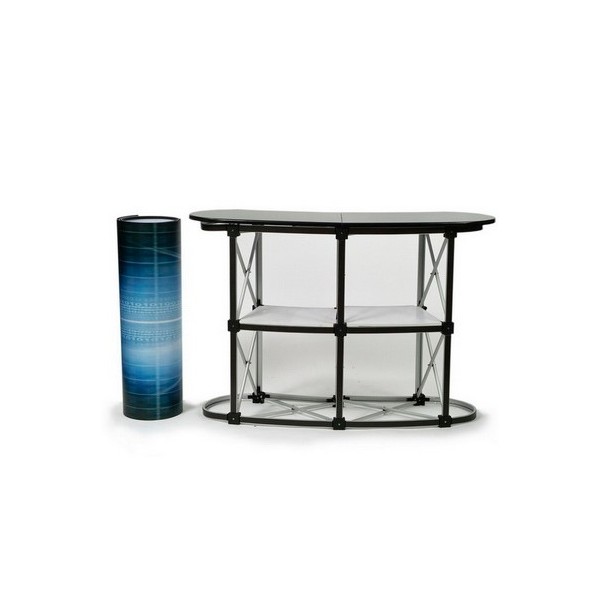 Descripción: El counter araña de dos cuerpos es de alta resistencia y calidad, posee una estructura de ensambles de aluminio, destaca por su eficiencia en el punto de venta y posee una amplia área (gráficas) para el desarrollo de imagen y cubierta rígida de MDF de color negro perlado. su peso estimado es de 19 kg y es desarmable para poder ser guardado en la bolsa de genero la cual está incluida sin costo en el valor del producto.(Sujeto a disponibilidad de stock).