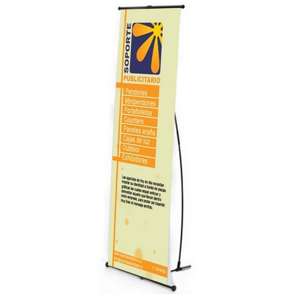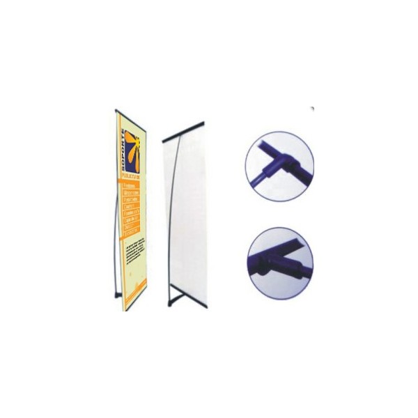 El pendón L básico de acero-alum es de alta resistencia y calidad, posee una base con peso para otorgar estabilidad, su peso estimado es de 1,6kg y su gráfica normal es de 60x160cms. Es desarmable para poder ser guardado en la bolsa de genero la cual está incluida sin costo en el valor del producto.