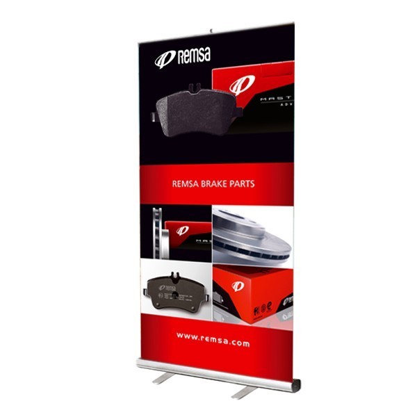 El Portapendón Roller de 120x200cms puedes combinarlo con gráfica en tela pvc, papel sintético o papel sintético laminado.