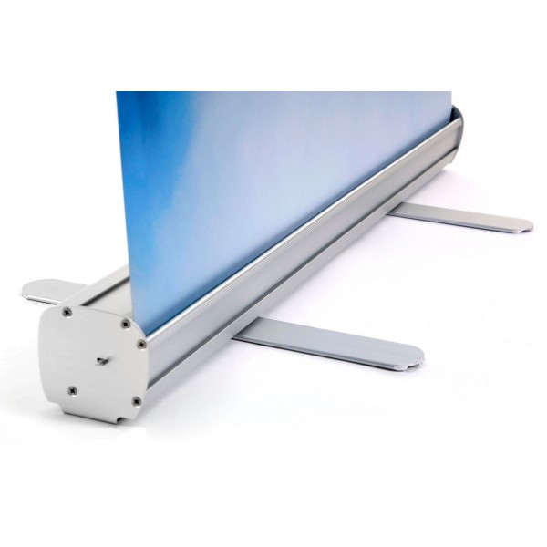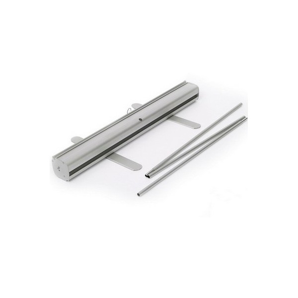 El pendón roller 120x200cms es de aluminio de alta resistencia y calidad, posee una base de aluminio rígida con doble llegada al piso para otorgar mayor estabilidad, su peso estimado es de 1kg y es desarmable para poder ser guardado en el bolso de genero el cual está incluido sin costo en el valor del producto.