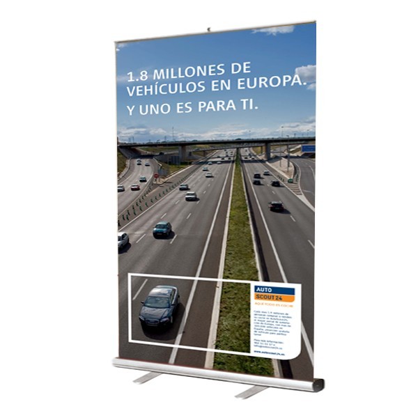 La gráfica del pendón roller en tela PVC brillante se caracteriza por su alta resistencia y durabilidad, su textura destaca con caracter sus diseños