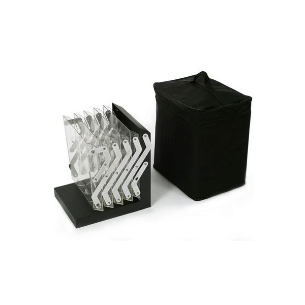 Portafolleto de acero-alum con bandejas acrílicas con bolsillo alto, posee un excelente sistema de plegado y amplia firmeza de sus componentes. Su peso estimado es de 9,5kg. el bolso de tela está incluido sin costo en el valor del producto.(Sujeto a disponibilidad de stock).