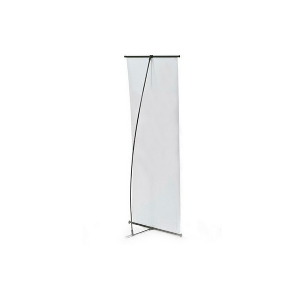 El pendón "L" con gráfica en papel sintético mate destaca por su textura lisa de marcada elegancia y buena resistencia.
