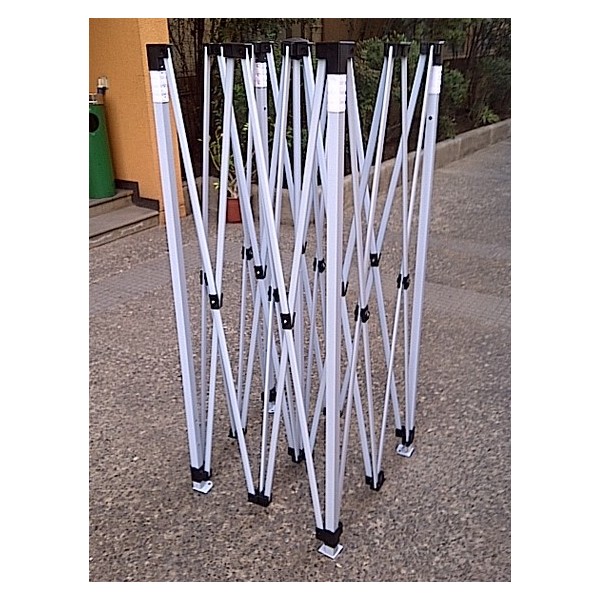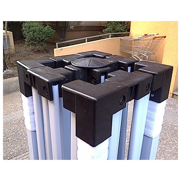 Descripción: El toldo publicitario araña posee una estructura de aluminio retráctil con conectores plásticos la cual permite sostener el toldo de material impermeable, puede adherir gráfica, es desarmable para optimizar su almacenaje.